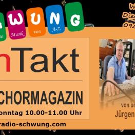 Hier finden Sie alles Wissenswerte über unsere Chormusiksendung ImTakt - Das Chormagazin und auch über unser Internetradio ImTakt - Das Chor Radio. ImTakt- Das Chormagazin ist jede Woche neu und wird wärend der Woche von den Internetradios Radio Regentrude, Radio Schwung (aus Ungarn) und bei ImTakt - Das Chor Radio gesendet. Ausserdem hören auch über den Krankenhausfunk die Patienten des Städtischen Klinikums in Karlsruhe (Klinikfunk Karlsruhe) mit!